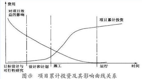 上面的图示表明在项目累计投资及其影响曲线之间存在这样一种关系:对项目整体效益的影响而言,项目前期进行的可行性研究其费用投入较少(通常不超过投资总额的1~3%),项目的主要投入在施工阶段;项目前期可行性研究对项目生命期的影响却最大,稍有失误就会导致项目的失败,产生不可挽回的损失,而施工阶段的工作则对项目生命期的影响很小。可见项目前期可行性研究工作对投资的影响有多么重要。因此,不断提高对投资项目可行性研究工作重要性的认识,认真扎实地做好投资前期的研究论证工作十分必要。