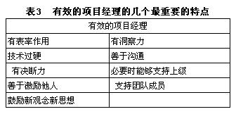 一、引言 项目管理者联盟 项目管理者联盟 在项目实施中,IT项目失败的比例明显高于传统项目。有些失败的IT项目通常还是前景被业内看好的,往往已注入了巨资,投入了大量的资源和人力。一份权威的统计报告显示:1994年,美国著名的咨询公司Standish Group对于8400个IT项目(投资250亿美元)的研究结果:项目实现其目标的占16%,项目补救后完成的占50%,项目彻底失败的占34%。 项目管理者联盟文章 项目管理者联盟 IT项目具有高风险的原因虽然多种多样,但僵化地照搬传统的项目管理理论、模式和方法,不能针对IT项目的特点实施管理来处理一些重大问题,是导致IT项目高风险的重要原因。IT行业是变化最快的行业,市场和环境在变,技术日新月异,人员不断流动,客户的需求经常变化等众多因素,使得IT项目变得越来越复杂和庞大。这就需要对传统的项目管理理论和方法重新认识,尤其是在团队管理方面。 talent.mypm.net pmp.mypm.net 导入案例:A和B是两家大型的国有电信企业,两年前合并改名为C,但实际两家公司并未合并,在管理上仍然是两个公司,并且业务重叠,存在诸多问题。随着WTO时间表的临近,2004年初,中国网通要求两家公司尽快实现企业重组和业务整合。A是一家用现代企业管理制度建立的公司,成立时间较短,员工年轻,富有朝气,工作效率高,工资水平也高。B是一家大型的国有老企业,人员臃肿,工资平均水平较低,知识老化,管理落后,但占有丰富的电信资源。 项目管理者联盟 项目管理者联盟 两家企业的整合实质上是A融合B,也就是人们常说的“蛇吞象”,难度之大是可想而知的。就产品项目部来说,小李是A公司原有的产品项目经理,曾在外企电信行业工作过5年,具有深厚的行业知识并对新技术具有敏锐的洞察力。小李是一个非常幽默的人,而且喜欢倾听,所以大家都愿意与小李在一起工作。小李对下属充分授权,鼓励新的产品策划和促销创意,他领导的项目团队虽然只有20多人,但非常团结,协作高效;老王是B公司产品经理,在电信行业工作了20多年,有一定的影响力,并且手下有近100人,但效率和积极性都很低。整合的过程是痛苦的,小李每晚和他的团队加班为整合开会,与大家沟通,每次两公司开会都是小李和他的团队发言,老王只是偶尔点头或象征性总结两句。这时上级给项目组下达了一个重要的任务:为了迎接电信日的到来,要求必须在这之前完成所有产品的整合工作,并从电信日开始做3个月的产品促销活动。产品项目部应该如何工作来完成任务呢?小李和老王谁会成为整合后C公司的项目经理呢?项目团队应该如何管理和工作呢?一系列棘手的问题都摆到了桌面上,并且时间紧迫。 项目管理者联盟 club.mypm.net 二、IT项目团队管理的特殊性和重要性 项目管理培训 项目管理者联盟 首先看一下IT项目和传统项目在诸多要素方面的主要区别,表示如下:项目管理者联盟 项目管理者联盟 比较结果表明,IT项目和传统项目管理要素的特征明显不同,特别是对“人”的要求差异很大。IT项目人力资源管理的特殊性主要表现在三个方面:第一,对项目经理的要求不同;第二,项目团队的管理方法不同;第三,人员流动性很大。 bbs.mypm.net service.mypm.net 许多公司的企业文化都是“以人为本”,对于IT企业来说,“人是企业最重要的资产”,那么对于IT项目来说,“团队就是项目成败的要素”,可见IT项目团队管理的重要性。例如,不少IT企业投入了大笔资金开发一个软件或系统项目,当项目进入关键时刻时,项目组的一个或几个关键人员突然离去,致使项目被拖延或失败的案例屡见不鲜。这充分说明:IT项目的成功与项目团队息息相关。正如IT项目管理专家理查德·默奇所言,“项目很少会失败,如果人不失败的话。” www.mypm.net 项目管理者联盟 三、IT项目团队管理的方法与实践 bbs.mypm.net 项目经理圈子 IT项目的团队管理,必须按照IT项目人力资源管理的特殊性来分步具体实施。 项目管理者联盟 项目管理者联盟 1.项目经理的胜任特征和选择标准 service.mypm.net 项目管理者联盟文章 IT项目经理不仅仅如传统项目经理那样,掌握预算、计划和人力物力资源分配技术,还需要有许多重要的新的能力和品质要求。项目经理的胜任特征主要有:①团队管理能力;②学习能力和敏锐的洞察力:IT技术进步日新月异,所以要对本领域的发展状况和新技术的应用前景充分了解和把握;③沟通能力:与团队成员、上级和用户的沟通,得到他们的支持是获得成功的前提;④规避风险的能力;⑤解决问题的能力;⑥协同工作的能力;⑦业务经验;⑧管理复合项目的能力;⑨控制变更的能力;⑩商务谈判的能力。 项目管理者联盟 项目管理者联盟 IT项目经理的选择一方面需要考虑其岗位职责,另一方面需考虑项目成功与哪些个人素质相关。美国国家科学基金会在1997年出了一份题为《为未来打基础:信息技术业的能力标准》的报告,其中列举了好的项目管理关键的15项职能。 项目管理者联盟 项目管理者联盟 另外,1998年的一项研究,调查了100位IT项目经理,内容包括:有效的项目经理需要哪些关键素质,结果如表3: 项目管理者联盟 www.mypm.net 表2所列的项目经理的15项职能和表3中有效的项目经理的9个最重要的特点,给出了选择项目经理的标准,为企业选拔和培养项目经理提供了参考依据。 项目管理者联盟 项目经理圈子 案例:Usky公司是国内一家知名的从