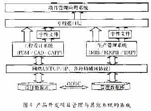 项目管理者联盟 产品开发项目管理系统的信息集成关键是将企业工程设计系统(PDM/CAD/CAPP)和生产管理系统(MIS/MRPII/ERP)集成,使之成为项目管理系统中的一个有机组成部分。集成框架是以网络和数据库为支撑技术形成的,包括数据库层、网络层、外部应用层、专用接口层、项目管理应用系统层。产品开发项目管理系统集成框架体系图4 所示。 club.mypm.net 项目管理培训 项目管理者联盟 service.mypm.net 其中,集成系统的最下面为数据库层。由于工程设计系统和生成管理系统使用不同的数据库,这些数据库往往是异构的。我们通过ODBC(Open Database Connectirity)方式访问数据库。ODBC是数据库服务器的一个标准协议,它向访问网络数据库的Window应用程序提供了一种通用的语言。可以对多种数据库安装ODBC 驱动程序,用来连接数据库并访问它们的数据,并使用结构化查询语言(SQL)作为访问数据的标准。 training.mypm.net talent.mypm.net 网络层包括各种网络协议以及企业现有的网络设备,网络层可以支持异构的计算机硬件环境和操作系统。对于一般的企业级网络和数据库应用,均采用两级C/S结构,将数据库安装在Server端,各个Client端通过网络对Server端进行存取访问。 项目管理者联盟 项目管理者联盟 在上面是应用系统层,该层分布有互相独立的应用系统,如图中所示的工程设计系统和生成管理系统。当然还可以包含其它应用系统。从图中可以看到,这两个系统分别有自己的数据库,它们各使用自己的方式通过网络访问数据库。 PgMp.mypm.net bbs.mypm.net 专用接口层是整个集成框架的核心部分。通过专用接口层将下面的复杂结构屏蔽,使专用接口层以上的部分不用考虑下面的系统结构。其中,专业接口层下面的层提供给它的有两种数据,一种是结构化数据,主要是指存储在数据库中,可以通过SQL语言查询的数据;另一种是文件系统,比如CAD系统产生的文件数据。针对这种情况,本文也提出了两种不同的接口方式。第一种是功能接口方式,它针对关系型数据库,使用ODBC 接口,提取集成所需要的共享信息、过滤无用或冗余信息并重新组织最终提交给上一层。对于第2种情况,主要采取的是使用中性文件的方式,使专用接口层和下面的系统层都只与中性文件进行数据交换,这样就保证了数据的统一性,实现了这两层的数据共享。 项目管理者联盟 项目管理者联盟 4 应用实例 项目管理者联盟 www.mypm.net 作者在广东某冰箱有限公司的新产品开发项目管理系统的设计与开发中,采用了本文阐述的各种关键技术,利用项目的分层组织模式和项目模型技术,实现了基于BOM的项目管理系统,并完成产品开发项目管理系统与企业原有的PDM 系统IMAN、CAPP 系统iCAPP、MRPII 系统MANMAN 等的集成。 pmp.mypm.net