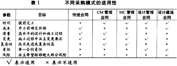 一、不同采购模式的适用范围 项目经理博客 (一)传统合同 项目管理者联盟 项目管理论坛 传统合同又称为设计-招标-施工合同。在传统合同模式下,业主将设计任务和施工任务分别交给设计团队和施工承包商来完成,设计和施工顺序进行。这种模式适用于下列的情况:一是业主雇用有经验的设计师进行设计,并协调设计与施工的关系;二是在施工开始之前,设计工作已经基本完成;三是业主可以雇用工料测量师计划和控制工程成本;四是价格成为选择承包商的主要标准之一;五是业主对于工期没有紧迫的要求;六是一般性能水平的建筑物或构筑物;七是通过协商,尽量采取比较公平的方式分配业主和承包商之间的风险。 项目管理者联盟 (二)设计建造合同 项目经理博客 转自项目管理者联盟 在设计建造合同模式下,业主只需要与设计建造总承包商签署合同,设计和施工任务全部由该总承包商来负责。设计建造总承包商可以雇用设计师和专业承包商来进行设计和施工。设计建造合同适用于下列的情况:一是没有很多经验的业主;二是提供单一的合同责任主体;三是采用固定总价,工程成本确定;四是不太复杂的项目;五是质量要求不高的项目;六是在施工过程中,业主不能改变要求;七是希望提前完工的项目。 项目管理者联盟 项目管理者联盟 如果总承包商只负责设计和施工管理,而不负责施工,则形成设计建造合同的一个变种——设计管理合同。 项目管理者联盟 club.mypm.net (三)MC管理合同 项目管理者联盟 项目管理者联盟 在MC管理合同模式下,除了设计师和专业承包商,业主还会聘用具有丰富专业经验的管理承包商(简称管理商),管理商主要负责合同管理以及协调设计师与专业承包商之间的工作关系。专业承包商与管理商签署合同,成为管理商的分包商。这种模式适用于下列的情况:一是业主较多地介入设计决策;二是具有丰富专业经验的管理商参与项目;三是需要尽早完工;四是大型的项目;五是技术要求复杂的项目;六是业主可能在施工过程中改变要求;七是业主追求最大可能的价格竞争。 项目管理者联盟 项目管理者联盟 (四)CM管理合同 项目管理者联盟 项目管理者联盟 在CM这种管理合同中,专业承包商直接与业主签署合同,而专业承包商与管理商(主要指CM经理)之间没有合同关系。这种模式适用于下列的情况:一是业主熟悉施工;二是需要尽早完工;三是技术要求复杂的项目;四是在施工过程中,业主会提出较小的变更;五是管理商与专业承包商责任分离;六是价格需要竞争,但“价值”比“价格”更重要。 项目管理者联盟 项目管理者联盟 二、根据项目目标选择采购模式 项目经理圈子 项目管理者联盟 在上述分析讨论的基础上,我们可以进行归纳总结,得到如表1所示的不同采购模式的适用性。 项目管理者联盟 不同的项目有不同的目标,业主在选择项目采购模式时,应当结合自己的预期目标,经过权衡做出正确的判断。 项目管理者联盟 bbs.mypm.net 首先,如果业主希望提前完工,则可以选择设计建造合同、设计管理合同以及MC和CM两种管理合同,而不能选择传统合同,因为在传统合同模式下,设计与施工顺序进行,无法缩短整个建设周期。 项目经理博客 项目管理者联盟 其次,如果业主希望开工前确定成本,则可以选择传统合同或设计建造合同,而不能选择MC管理合同、CM管理合同以及设计管理合同。 项目管理者联盟 service.mypm.net 第三, 如果项目本身技术要求比较复杂,则应当选择MC管理合同或CM管理合同,因为可以充分发挥管理商的专业知识和管理经验,而不宜选择传统合同,更不宜选择设计建造合同和设计管理合同。 项目管理者联盟 项目管理者联盟 第四, 如果业主希望简化合同关系,则可以选择设计建造合同和设计管理合同,因为它们提供了单一的合同责任主体。 项目管理者联盟 项目管理者联盟 第五, 如果业主希望将绝大部分风险转移给承包商,则可以选择设计建造合同,而不能选择其他合同,因为在设计建造合同中总承包商通常会承担除业主变更要求、法令变更以及不可预见的特殊困难之外的所有风险。 项目管理者联盟 club.mypm.net 三、通过比较适用程度来选择采购模式 项目管理者联盟 项目管理者联盟 针对某一具体问题,即使有几种采购模式都适用,不同的采购模式的适用程度也是不一样的,通过比较,我们可以判断选择那种采购模式更为合适。在这里,我们挑选传统合同、设计建造合同以及CM管理合同进行对比。 项目管理者联盟 项目管理者联盟 如图1所示,在业主介入项目过程多少这一问题上,采用传统合同时业主介入最少,因为设计师代表业主完成了绝大部分的项目管理职能;设计建造合同其次;而在CM管理合同中,由于没有了总承包商这一角色,业主会较多地介入项目过程。业主可以根据自己的经验、能力以及希望介入项目的程度多少,来决定究竟采用那种模式。 项目管理者联盟文章 项目管理者联盟 项目管理者联盟 PgMp.mypm.net 针对业主在施工过程中变更要求这一问题(见图2),设计建造合同的适应能力最弱,因为设计建造合同是集成为一个整体的总价合同,业主必须在项目开始阶段明确定义自己的要求,在设计建造过程中,变更要求很难处理,必须尽量避免变更要求;传统合同的适应能力其次,尽管传统合同中包括变更的条款,但范围是有限的;CM管理合同适应变更的能力