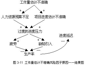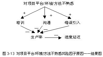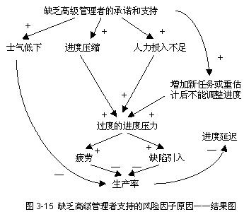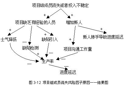 club.mypm.net PgMp.mypm.net bbs.mypm.net 项目管理者联盟 在实施问卷调查之前,为了帮助项目经理理解风险因子及其潜在的影响,特别准备了这些风险因子的原因——结果图形。原因——结果图形是Eden和Ackerman 在1992年提出的一种图形化描述系统原因与结果关系的建模方法,使用原因——结果图形可以清楚地表示风险因子的潜在影响。 pmp.mypm.net 项目管理论坛 原因——结果图形由标签、标签之间的连结线段组成,这些线段带有箭头用以表示方向,在箭头的旁边还带有正(+)、负(-)号。每一个标签表示一个原因或者一个结果,当箭头指向某个标签时,则该标签表示一个结果,连接线段的另一端标签则表示一个原因,因此,原因——结果图形中的一个标签既可能是一个结果,同时又可能是另一个结果的原因。箭头旁边的符号则表示结果变化的方向与原因的变化方向是否一致,当符号为正号时,则表示随着原因增长时,结果也相应地增长;当符号为负号时,则表示当原因增长时,结果却相应地减少。图3-8是原因——结果图形的一个简单例子,当项目开发过程中需求持续膨胀时,设计返工的工作量随之增加。 service.mypm.net 项目管理者联盟 图3-9则表示了原因——结果图形的另外两种特征,符号为负号的路径以及增强正反馈路径。过度的进度压力在短期内可以提高生产率,但同时也增加了员工的疲惫程度;疲惫程度加大后,导致生产率下降。正反馈路径出现在:由于疲惫程度加大,引发更多的缺陷,造成更多的返工,进而使得进度压力更大。 项目管理者联盟文章 转自项目管理者联盟 www.mypm.net 项目管理者联盟 6种主要风险因子的原因——结果图形分别如下: 项目管理者联盟文章 项目管理者联盟 需求膨胀风险因子 项目管理者联盟 training.mypm.net 项目管理者联盟 项目管理培训 当需求新增或者需求发生变更时,很可能带来新的工作任务和活动,工作产品规模随之变大;同样地,需求膨胀也会导致对原有需求的设计返工。无论是产品规模变大,还是设计返工增加,都将对项目的进度造成影响。 项目管理者联盟 项目管理者联盟 工作量估计不准确风险因子 项目管理者联盟 项目管理者联盟文章 工作量估计不准确,往往是指工作量估计偏少,这是由于人们在进行软件项目估计时,倾向于忽视某些“可能需要做”的工作,而不是把“可能不需要做”的工作也计算在内。当然也有项目组工作量估计偏多,偏多的结果之一就是项目组人力资源得不到充分发挥。当工作量估计偏少时,项目人力资源投入可能不足,或者项目计划完成时间点提前,这两点最终会导致项目组成员感受到过度的进度压力,从而导致项目延迟更多。 training.mypm.net bbs.mypm.net 项目组成员流失风险因子 talent.mypm.net club.mypm.net 项目组成员流失或者投入不稳定,使得项目组缺乏有经验的人员,并在可能的情况下增加新人到项目组。由于缺乏有经验的人,将导致缺陷引入增加,缺陷也不能尽早发现,项目组的士气也有一定程度的下降,所有这些将会导致生产率的下降,最终引发进度延迟问题。增加新人到项目组,由于存在接手时间,并增加了项目组沟通的工作量,进度也会有延迟。 项目管理者联盟 项目管理者联盟文章 项目管理者联盟 项目管理者联盟 项目管理者联盟 项目管理者联盟 对项目平台/环境/方法不熟悉风险因子项目经理博客 项目管理者联盟 项目管理者联盟 项目管理者联盟 对项目平台/环境/方法不熟悉,将导致更多的正式培训或者边干边自学,也会导致更多的项目沟通时间,错误引入也会因为对平台/环境/方法的不熟悉而增加,所有这些将会降低项目组的生产率,从而使得进度延迟。 项目经理圈子 缺乏关键人员风险因子 项目经理博客 项目管理者联盟 项目管理者联盟 项目管理者联盟文章 项目组缺乏关键人员,将导致不具备相关技能的人员上岗。由于不具备技能,培训工作量上升,缺陷引入上升,而缺陷检测水平下降,所有这些,将导致生产率下降,从而使得进度延迟。 项目管理者联盟 项目经理博客 缺乏高层管理者的承诺和支持风险因子 项目管理者联盟 项目管理者联盟 PgMp.mypm.net 项目管理者联盟 项目组缺乏高级管理者的支持和承诺,一般存在人为压缩进度、人力资源投入不足、或者在增加新任务的情况下不能调整进度的现象,这些将使得项目组成员在过度的进度压力环境下工作,最终导致项目进度的延迟。而且,如果项目组缺乏高层管理者的支持和承诺,项目组的士气则大为降低,影响了项目组成员能力的发挥,也降低了生产率。 项目管理者联盟 项目管理者联盟