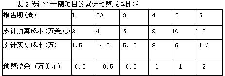 8+3+10+8+2+3+2=36天 项目管理者联盟文章 项目管理培训 可见,路径一需时最长,是该项目的关键路径,加上验收需要的7天时间,整个项目的周期是:49+7=56天。项目经理进一步观察网络结构图的关键路径,发现环一显然是瓶颈所在,环二和环三的系统测试完成后都在等待环一的系统测试完成,项目才能进入验收阶段,环一的硬件安装工期为15天,比环二、环三的硬件安装工期要长,而且从技术角度而言,环二、还三的工程人员可以进行环三的安装,因此如果将环二、环三部分负责硬件安装的工程人员调往环一,调整各环完成硬件安装的工时,就可以使各路径的长度发生以下变化: 项目管理者联盟 1)环一:硬件安装工时从1 5天缩短至7天,路径一长度从49天缩短到4l天。 项目经理圈子 2)环二:硬件安装工时从1 0天增加至1 4天,路径二长度从36天延长到40天。 项目管理者联盟 3)环三:硬件安装工时从1 0天增加至1 4天,路径三长度从36天延长到40天。 项目管理者联盟文章 talent.mypm.net 关键路径仍然是路径一,关键路径从49天缩短为41天,从而也使项目周期缩短了8天,硬件安装的总工时没有变化,压缩的项目工期是通过调整项目子任务之间的资源配备而实现的。这说明,关键路径分析对于项目的计划是相当重要的,利用关键路径法,可以反复地调整项目的资源分配以缩短关键路径的长度,从而缩短项目的周期。 项目管理论坛 项目管理论坛 4.制定基准计划。项目基准计划如图9所示: 项目管理者联盟 项目管理者联盟 项目管理论坛 项目经理将基准计划输入到数据库系统中,并通过系统向物料部、工程安装部、技术支持部发布计划信息,各部门接到计划后即开始执行项目。项目管理者联盟 项目管理者联盟 (二)、广东光传输骨干网工程项目进度和成本的控制过程 blog.mypm.net 项目管理者联盟 下面以XX中网公司华南区负责实施的广东省级光传输骨网工程项目为例具体分析XX项目管理执行阶段项目进度和成本的控制过程。 项目经理博客 项目管理者联盟 项目背景:2001年6月XX公司与广东省某电信公司签定了省级骨干网传输工程合同,合同金额为800万美会,XX负责提供光传输设备和系统的安装调测,合同规定项目在合同签订后第25周完成验收并交付使用。合同金额刨去设备的成本和毛利后,项目的工程总预算为合同金额的5%,800x5%=40(万美金),项目的报告周期为每周一次。 项目管理者联盟 项目管理者联盟 项目启动6周后客户提出要求提前3周完成项目以配合他们数据业务推广计划的实施时间。来自客户方的变化将对项目进度产生影响,为了估算这一变化可能对未来项目成本产生的影响,项目经理决定首先对当前项目的实际成本状况进行分析。项目经理用三个项目成本指标(累计预算成本、累计实际成本、累计预算盈余量)分析项目前6周的成本状况。这三个指标的含义如下: 项目管理论坛 blog.mypm.net 累计预算成本=分配给当前已完成工作量的预算总额 累计实际成本=当已完成工期作量的成本 PgMp.mypm.net 累计预算盈余=累计预算成本一累计实际成本 项目管理者联盟文章 项目管理者联盟 项目经理调用项目数据库中的数据,得到各报告期的累计预算成本、累计实际成本和预算盈余数据如表3—4所示: 项目管理论坛 项目管理者联盟 项目管理者联盟 将累计预算成本和累计实际成本列在同一座标轴,观地观察当前项目的成本状况。累计预算成本和累计实际成本曲线如图10所示:项目管理者联盟 项目管理者联盟 项目管理者联盟 training.mypm.net 项目管理者联盟 项目管理者联盟 项目管理者联盟 www.mypm.net 项目管理者联盟 项目管理者联盟 项目管理者联盟 项目管理论坛 项目管理者联盟 项目管理者联盟 从图中可以看到构!当前报告期(第6周末)累计预算成本曲线在累计实际曲线的上方,这说明在项目的前6周成本得到有效控制,当前发生的实际项目成本累计小于预算成本累计。也就是说当前完成的工作量所消耗的预算小于预分配的预算,预算产生了盈余,盈余额为2万美元,项目的成本状况是良性的,正的预算盈余非常有利于项目对总成本的控制。在项目进度方面,前6周已经按项目基准计。划完成了发货和硬件安装等工作,既没提前完成,也没有落后于项目计划,因此项圈的正常工期尚余25—6=1 9周。总结当前的项圈状态是项目进度按时完成,项目预算有2万美元的盈余。 项目管理者联盟 项目管理者联盟 接着,项目经理分析如果要缩短项目工期会对项目成本产生怎样的影响。首先对未完成的项目活动进行分析,项目经理将这些.工作逐个列出并作分析如下: 项目管理培训 service.mypm.net 1.广州地区传输系统的单机调测和系统调测。为了方便分析,以任务代号A代表该系统的单机调测,以任务代号B代表该系统的系统调测。分配给任务A的预算为8万美金,在正常情况任务A的工期为9周。由于技术的限制,在应急情况下,如果增配技术更为熟练的人员和配备更先进的测试设备,任务A的工期最多能压缩到8周,相应地,成本将升到9万美元。完成任务B的预算为5万美金,正常情况下的工期为l 0周;应急情况下,如果增配人员和测试设备,任务B的工期最多可以压缩到7周,相应地,任务成本将上升到ll万美元。系统的调测工序决定了任务A完成后,任务B才能开始实施。 service.mypm.net 项目管理者联盟