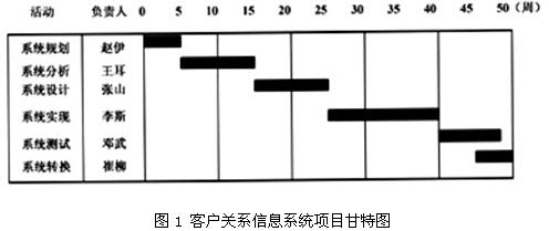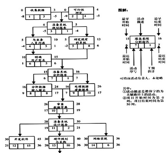 项目经理与客户签订开发合同之后,接下来的工作就是组织项目团队、绘制专业领域技术编制表、建立工作分析结构(WBS)以及项目组成员的责任矩阵,并在此基础上进行工期和预算的分摊,也就是制定项目的进度和成本计划。 项目管理者联盟 项目管理者联盟 成员能力评估 项目管理者联盟 为了让项目组成员各负其责,行文确定他们在项目组里分担的责任是很重要的。比较有效的方法是绘制技术编制表及责任表。在项目开始时就要恰当地搭配好人员、技术及工作任务。随着项目的进展,有可能必须把已分的工作再细分或进行新的调整,为此,项目经理应该清楚地了解项目组成员各自掌握的技术。 项目管理者联盟 项目管理者联盟 首先,我们可以绘制技术编制表(表1),为项目组人员打分,其方法是按照对专业领域的熟悉程度打分。例如,将专业领域分为五个:系统分析员、程序员、测试工程师、硬件工程师、数据库管理员,并将最高分定为5分。随后根据每个成员对上述专业领域的熟悉程度打分,熟悉程度越高,打分越高。如此一来,就可以对项目组人员及技术状况一目了然,并据此分配工作。 项目管理者联盟 blog.mypm.net 技术编制表绘制完成之后,项目经理就可以根据项目的实际需求来绘制责任表(表)。该表是项目主管与项目组成员之间的工作合同文件,也是进行人员任用或让其承诺某项工作的重要手段。 项目管理者联盟 项目管理者联盟 在表2中,P 表示“负主要责任”,S 表示“负辅助责任”。每项任务只需要一个人负主要责任,但可以安排几个项目组成员辅助他。 项目管理者联盟 training.mypm.net 项目管理者联盟 项目管理培训 工期与预算分摊 club.mypm.net 项目管理者联盟 责任表一旦建立,就可以进行项目各建设活动的工期估计和预算分摊估计。工期估计和预算分摊估计可以采用两种办法:其一是自上而下法,即在项目建设总时间和总成本之内按照每一工作包的相关工作范围来考察,按项目总时间或总成本的一定比例分摊到各个工作包中;其二是自下而上法,由每一工作包的具体负责人进行工期和预算估计,然后再进行平衡和调整。 项目管理者联盟 项目管理者联盟 经验表明,让某项工作的具体负责人进行估计是较好的方法,因为这样做既可以得到该负责人的承诺,对他产生有效的参与激励,又可以减少由项目经理独自估计所有活动的工期所产生的偏差。 club.mypm.net 项目管理者联盟 在上述估计的基础上,项目经理完成各工期的累计和分摊预算的累计,并与项目总建设时间和总成本进行比较,根据一定的规则进行调整。 项目管理者联盟 项目管理者联盟 实例 项目管理者联盟 项目管理者联盟 这里用一个具体例子来说明项目成本和进度的计划安排过程。 项目管理者联盟 项目管理者联盟 假设某企业准备开发一个客户关系管理系统,合同双方将系统交付使用作为项目终结的依据,双方同意维护期间费用另行支付。经测算,该项目总开发工作量为4人年,项目总开发时间为50周,项目总成本(包括软件开发成本、硬件成本和开发中的其他成本)为100万元人民币。 PgMp.mypm.net 项目管理者联盟 根据相关的责任矩阵,项目经理绘制了项目的甘特图(图1)。图中将该项目划分为六大活动,并明确了各活动的工期:系统规划(5周)、系统分析(10周)、系统设计(10周)、系统实现(15周)、系统测试(8周)和系统转换(5周)。 training.mypm.net PgMp.mypm.net 转自项目管理者联盟 上述六大活动又细分为22项小活动,各项小活动之间的顺序关系以及每项小活动的工期估计和预算分摊估计如表3所示。在此基础上,可以画出该项目的网络图(图2)。 talent.mypm.net 项目管理者联盟 到此为止,已经估计出该项目中每项活动的工期和项目的总时间。为了确定这些活动是否能在要求的时间内完成,我们必须计算出一个项目进度计划,为每项活动的执行提供时间表,这个时间表主要解决以下两个问题: 项目管理者联盟 转自项目管理者联盟 项目管理者联盟文章 项目管理者联盟 图2客户关系信息系统项目网络图 项目管理者联盟 项目管理者联盟 1.最早开始时间(ES)和最早结束时间(EF) bbs.mypm.net club.mypm.net 它们是指在项目合同开始时间的基础上,每项活动能够开始和完成的最早时间。ES 和EF 是通过网络图的正向计算得到的,即从项目开始沿网络图到项目完成的累计时间。 项目管理者联盟 项目经理圈子 2.最迟开始时间(LS)和最迟结束时间(LF) 项目管理者联盟 club.mypm.net 分别指为了在项目合同要求完工时间内完成项目,每项活动必须开始和完成的最迟时间。LF 和LS可以通过网络图反向推算得出,即从项目完成沿网络图到项目开始进行推算。 training.mypm.net 项目管理者联盟 在此基础上,可以绘制出附有开始时间和结束时间的进度时间表(表 4)。在网络图中也可标出每项活动的上述四个时间(参照图2中每个活动描述框四个角上的数据)。 项目管理者联盟 项目管理者联盟 在这个客户关系管理项目中,表4中最后一项活动“准备系统转换报告”的最早结束时间和项目要求完工时间之间有9天的差距,这个差距叫做“总时差”,有时也叫“浮动量”。总时差可以用每项活动的最迟结束(开始)时间减去它的最早结束(开始)时间算出,即: