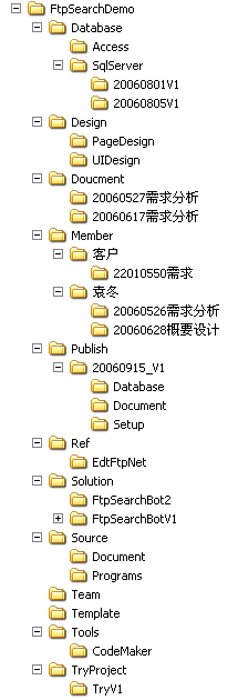 9,Team。团队的公用文件夹。存放公用的信息,比如说成员的联系方式等。 club.mypm.net PgMp.mypm.net 10,Template。模版。一般指文档模版,即dot文件。目的是为了保证项目的文档都有一致、良好的格式。这点在对企业单位,特别是国有企业的项目中尤其重要。混乱的格式会给人不可靠的感觉,领导对此尤为敏感。来源:www.examda.com bbs.mypm.net 项目管理者联盟 11,Tools。项目所用到的工具软件。比如说代码生成器等。 PgMp.mypm.net 项目管理论坛 12,TryProject。每个项目都可能涉及到一些我们不太了解的技术,这就需要我们做一些尝试,这些尝试也应该保存下来,作为参考。我们可以建立一些TryProject进行实验。 club.mypm.net 项目管理者联盟 以上就是我管理文档的方法。从文档的管理方法其实可以反映出很多项目的情况。一个良好的项目应该有良好的条理性。,具体展示出来的效果如图所示: 项目管理者联盟文章 项目管理者联盟文章 www.mypm.net 项目管理者联盟 需要说明的是,这个图所展示出来的只是一个Demo。也是我为这篇文章所建立的。所有非常的小。真正的项目文件夹有几个G大小是很正常的。 pmp.mypm.net 项目管理者联盟 2.4版本控制 转自项目管理者联盟 任何项目都需要有版本控制,这是无可厚非的。版本控制就是个大型的Undo/Redo。保证你随时可以吃后悔药。 项目管理者联盟 training.mypm.net 版本控制的概念不应该仅仅只是捕捉代码。所有和项目相关的数据都应该在被捕捉的范围内。这些数据通常包括:文档、设计、数据库(及脚本),发布过的二进制包。采集的资料等。这也是现在的版本控制软件发展的方向。 项目管理者联盟 www.mypm.net 对于文档、设计等,其实前面的文档管理方法就是一种版本的控制方法。 项目管理者联盟 pmp.mypm.net 对于代码,这个级别上的项目VSS无疑是最合适的选择。不管有没有第二个程序员,代码的版本控制都是有益无害的。来源:www.examda.com 转自项目管理者联盟 项目管理论坛 2.5其它方面 talent.mypm.net club.mypm.net 1, 数据库 项目管理者联盟 项目管理者联盟文章 数据库如果在团队项目中,一般是架设在专门的服务器上的,这样大家都可以根据同一个版本进行开发。不过数据库的修改就要比较谨慎。同时要建立好数据库备份计划。 项目管理者联盟 项目管理者联盟 如果能够分离数据层,或者采用ORM等框架,支持数据库类型的转换,那么采用Access进行开发,部属的时候采用Sql也是一个不错的选择,这样备份和转移的时候依然可以一个Copy搞定。 项目管理者联盟 www.mypm.net 2、备份 blog.mypm.net 项目管理者联盟 由于文件都在一个目录中,所以备份文档就是把整个项目目录Copy以下,不过有的时候最好清理一下TestResults(单元测试结果)文件夹,再压缩一下Solution文件夹。如果使用了VSS,还要记得备份VSS的数据库。 项目管理者联盟 项目管理者联盟 以上的方法不一定是最好的,只是我在做项目的过程中总结的一些适合自身的技巧。希望对大家有帮助。也希望起到抛砖引玉的作用。