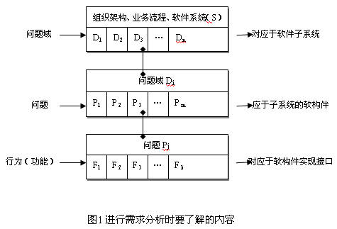 1、需求阶段监理的定位 项目管理培训 bbs.mypm.net 原则上尊重承建方的项目管理和项目分析能力,在具体的任务开展上,以不深入、不干扰承建方的自主权为主,但是如果在项目合作过程中发现中软项目管理以及项目分析能力在本项目的进行上存在很大的差距和不足,为了保证项目的成功顺利开展监理内部必须加强项目管理能力和项目分析能力,在具体的操作上可以坚持吸收、同化、贯彻的方法和手段。 项目管理者联盟 项目管理者联盟文章 2、需求分析的进展方式及监理角色的把握 bbs.mypm.net 项目管理者联盟 需求分析是一个项目的开端,也是项目建设的基石,在以往的建设失败的项目中80%的是由于需求分析的不明确而造成的,因此一个项目的成功的关键因素之一,就是对需求分析的把握程度上,项目的整体风险具体表现方式在需求分析不明确、业务流程不合理上,用户不习惯或者不愿意去用承建方的软件,或者很难去用,造成了项目失败。因此作为第三方的监理公司,必须提醒承建方、客户方重视需求分析的重要性,采用必要的手段和方法来进行需求调研。同时监理方也应深入具体的需求调研中去,只有这样才能切切实实的把握用户的需求和方向,才能在将来的功能界定、开发范围上有发言权。 项目管理培训 service.mypm.net 2.1、为什么咨询监理方要对需求分析进行重点监控 项目经理博客 项目经理博客 由于项目的特殊性和行业覆盖的广阔性,以及需求分析的高风险性,所以在整个软件的开发周期中,需求分析的重要性是不言而喻,需求分析难做的的确确难做,这是基本是由于以下几种原因造成的:(1)客户说不清楚需求;(2)需求自身经常变动;(3)分析人员或客户理解有误。 项目管理者联盟 项目管理者联盟 2.1.1客户说不清楚需求 项目经理博客 项目管理者联盟 有些客户对需求只有朦胧的感觉,当然说不清楚具体的需求。例如全国各地的很多部门、机构、单位在进行应用系统以及网络建设,客户方的领导和办公人员大多不清楚计算机网络有什么用;缺乏系统的IT建设方面的专家和知识。这时间就会要求软件系统分析人员替他们设想需求。工程的需求存在一定的主观性,为项目建设埋下潜在的风险。 项目管理者联盟 项目管理者联盟 2.2.2需求自身经常变动 项目管理者联盟 项目管理者联盟 根据以往的历史经验,随着客户方对信息化建设的认识和自己业务水平的整合提高,会在不同的阶段和时期对项目的需求提出新的要求和需求变更,其实在历史上没有一个软件的需求改动少于三次的,所以必须接受“需求会变动”这个事实,所以在进行需求分析时就要防患于未然,尽可能地分析清楚哪些是稳定的需求,哪些是易变的需求。以便在进行系统设计时,将软件的核心建筑在稳定的需求上,同时留出变更空间。咨询监理方在需求分析的功能界定上担任一个中间、公平、公正的角色,所以也必须参与到需求分析的准备中来,以便协助客户方和承建方来界定“做什么”、“不做什么”的系统功能界限。 项目管理者联盟 项目管理者联盟 2.1.3 分析人员或客户理解有误 pmp.mypm.net 项目经理博客 软件系统分析人员不可能都是全才,更不可能是行业方面的专家。客户表达的需求,不同的分析人员可能有不同的理解。如果分析人员理解错了,可能会导致以后的开发工作劳而无功,记得一则笑话“有个外星人间谍潜伏到地球刺探情报,它给上司写了一份报告:‘主宰地球的是汽车。它们喝汽油,靠四个轮子滚动前进。嗓门极大,在夜里双眼能射出强光。……有趣的是,车里住着一种叫作‘人’的寄生虫,这些寄生虫完全控制了车。’”所以分析人员的知识的专一性也会造成需求分析的误解和失败。这时间咨询监理公司就必须根据实际的项目需求调研计划,提醒承建方加强业务了解程度和注重沟通技巧。 www.mypm.net 项目管理者联盟 2.2咨询监理公司如何进行需求分析 转自项目管理者联盟 项目管理培训 需求分析不象侦探推理那样从蛛丝马迹着手。应该先了解宏观的问题,再了解细节的问题,如图1所示。 项目管理者联盟 项目经理博客 项目管理者联盟 项目管理者联盟 一个应用软件系统(记为 S)的涉及面可能很广,可以按不同的问题域(记为D)分类,每个问题域对应于一个软件子系统。 项目管理者联盟 项目管理者联盟 S = { D1,D2,D3,… Dn } 项目管理者联盟 项目管理论坛 问题域Di 由若干个问题(记为P)组成,每个问题对应于子系统中的一个软构件。 项目管理者联盟 项目管理者联盟 Di = { P1,P2,P3,… Pm } 项目管理者联盟 项目管理者联盟 问题Pj有若干个行为(或功能,记为F),每个行为对应于软构件中的实现接口。 项目管理者联盟 club.mypm.net Pj = { F1,F2,F3,… Fk } 项目管理者联盟 blog.mypm.net 按图4.1结构写成的需求说明书,对于那些只想了解宏观需求的领导,和需要了解细节的技术员都合适。在写需求说明书时还应该注意两个问题: talent.mypm.net 项目管理者联盟 (1)最好为每个需求注释“为什么”,这样可让程序员了解需求的本质,以便选用最合适的技术来实现此需求。 项目管理者联盟 项目管理者联盟 (2)需求说明不可有二义性,更不能前后相矛盾。如果有二义性或前后相矛盾,则要重新分析此需求。 项目管理论坛 pmp.mypm.net 2.3咨询监理公司需求分析方法论 pmp.mypm.net 项目管理者联盟文章