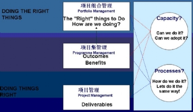 项目(Project)、项目群(Programme)、项目组合(Portfolio),分属三个级别,构成公司项目金字塔,保证项目交付符合企业整体战略。可以站在企业管理高层(如CEO,CFO,副总等)的角度,从上往下看(Top-Down),通过战略分解,实现价值。也可以站在部门和总监的角度,从下向上梳理(Bottom-UP),通过归并项目组,保持与企业整体战略一致。项目经理博客