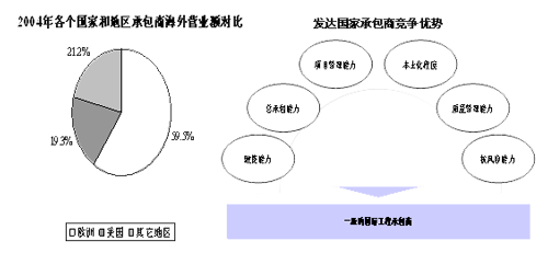 ·境外工程总承包业务规模发展迅速:根据中国勘察设计协会的调查, 2003-2005年排序前100名勘察设计企业中,分别有20家、27家、38家企业承担了境外工程总承包,完成境外工程总承包合同额分别为35.3亿元、47.4亿元、99.5亿元,分别比上年增加13.9 %、34%、110%。目前,我国对外承包工程项目日趋大型化,部分大型对外企业积极进入高端市场,不但在国外承担了不少EPC总承包项目,而且总承包合同额大幅度增长。在水电、火电、石化、公路、有色金属等行业建成了一批具有可观盈利前景的工程总承包项目。项目管理者联盟