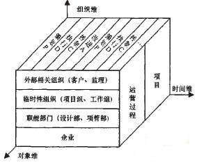 IS09000系列标准为企业建立质量体系提供了质量保证规定和实施原则。最新的IS09000质量标准(IS09000:2000),强调采用面向过程的方法,使其具有更广泛的适用范围。按ISO的定义,过程是接收输入并将其转化为输出的活动。质量管理系统需要识别并管理组织的内部过程,及这些过程问的相互关系。IS09000:2000建议每个过程都基于规划、执行、检查和改进(Plan.Do—Check—Act,PDCA)模式进行管理。若采用基于面向过程的方法,则质量管理的客体是企业所有内部过程。在现代企业中,过程包括2种类型:(1)连续不断、周而复始的运营过程,如人员考核、车间生产等;(2)项目是一种特殊的过程,它是在一定时间内,满足一系列特定目标的多项相关工作的总和。项目与运营过程不同,具有不可重复性、多目标性和临时性等特点,因此,项目的质量管理更复杂。当更多企业业务活动需要通过项目的形式来组织时,必须对企业范围内的所有项目实施有效的质量管理,并在质量系统中协调项目和运营过程质量管理的关系。运营过程、项目和质量管理的关系可以通过图1来描述。在时间维,定义了基于PDCA模式的过程执行和质量管理过程,PDCA的4个阶段循环执行,实现企业质量管理的持续改进;在对象维,定义了企业质量管理的客体对象,即项目和运营过程2种类型的过程;在组织维,定义企业质量管理的组织层次,包括企业、职能部门、临时性组织和外部相关组织等企业质量管理的主体。项目作为企业质量管理的客体对象之一,其主体包括企业领导、职能部门、项目组和客户等,其过程参照PDCA模式执行。项目管理者联盟