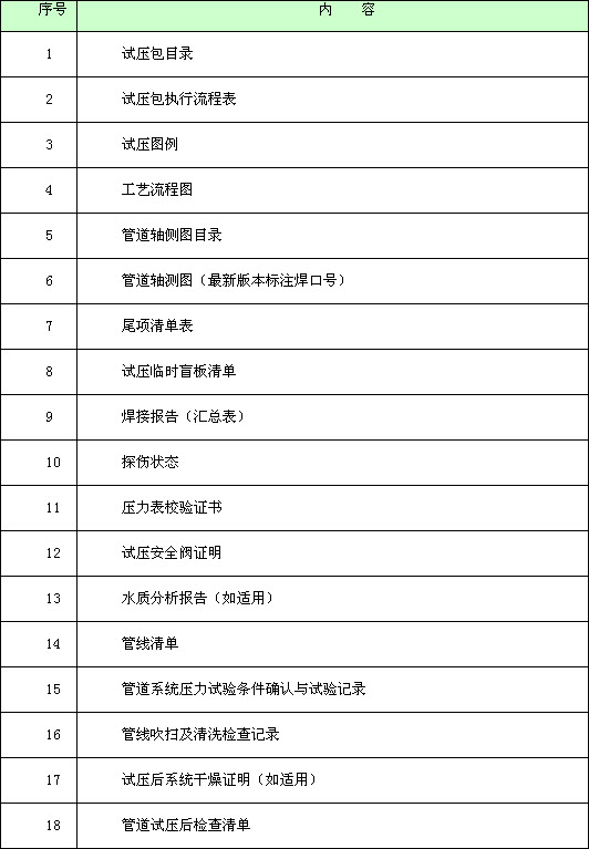 工作包模板的主要内容包括其所包含的施工项目,设计图纸和目录,施工方案(包括进度、人力和机具计划),质量控制点计划,工作安全分析,各种施工记录和隐蔽工程记录表格,各种试验、检验和见证报告,尾项清单,单项工程联合检查验收报告等。典型的工作包内容示范见表5。项目管理者联盟