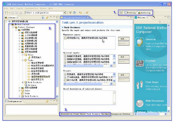 2> 步骤二、完成方法内容的开发。方法定制时,我们可以以任务为核心,在任务的属性窗口中完成"步骤"、"角色"、"工作产品"、"指导信息"四个页面的内容,同时实现完成指定任务所需的"角色"、"工作产品"和"指导信息"的定制工作。转自项目管理者联盟