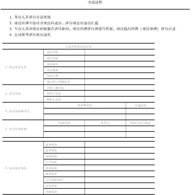 1 项目执行经理组织准备启动会所需资料,包括项目启动会汇报材料、会议议程、拟参会人员名单等。blog.mypm.net
