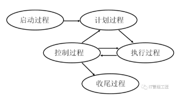 图中从控制过程返回到计划过程的箭头是有着深刻含义的。在项目的控制过程中发现偏差需要修改计划时,要重新回到计划过程调整计划,再按照新的计划进入执行过程。这是一个典型的反馈控制系统,理论上已经满足了对计划进行动态管理的要求,关键还是要看实践中如何运用。项目管理者联盟