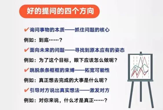 提出真正有价值的问题的前提是用心的多听,用心的多看。用一颗好奇心来趋势自己来不断的探究谈话的真正意义所在。谦卑有礼的心态,能让谈话有效的进行下去,愉快的情绪才能促使双方达成一致的结论。training.mypm.net
