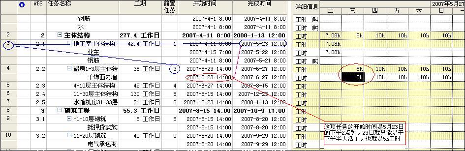 不是啊,我项目的工作时间是每天10小时(7.00-12.00,14.00-19.00),如某一任务工期为2天,资源配置后查看资源工时分布,结果是第一天5h,第二天10h,第三天5h,总工时是20没错,但跨了3天,我也没有延时分配,在选项卡中的设置是每天工作10小时,正常应该是第一天10h,第二天10h?只需2天啊,我用了好几年的project,以前从来没碰到过这样的事情,怎么会这样啊?可以和你QQ深入交流吗?