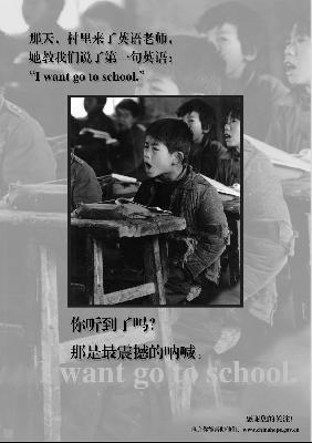 第九张 求知 这是一张老照片,初看的时候感觉心酸,逐渐的,发现了求知的力量, 破旧的教室,打满布丁的衣裳,却掩盖不了心中对知识的渴望, 比起那些一坐进教室就头疼的城里孩子来讲,他就是幸福的