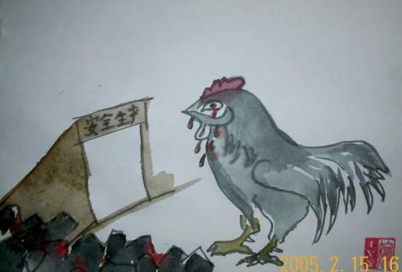 金鸡变乌鸡 只为矿难啼 一啼孤儿苦 二啼寡妇凄