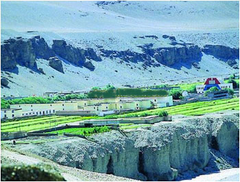 普兰 普兰县城位于纳木那尼雪峰和阿比峰之间的孔雀河(马甲藏布)谷地,与尼泊尔、印度相邻,是阿里之围中“雪山环绕的地方”。 孔雀河谷地带景色优美,四周雪峰峻峭,雪峰下是风化的砾石和黄沙形成的堆积层,起伏有序,沟壑纵横。来自孟加拉湾的海洋季风越过喜马拉雅山吹到这里,形成了青藏高原难得一见的湿润气候,大片的绿洲似翡翠般镶嵌在孔雀河谷,错落有序的村庄,缭绕的炊烟,赶着牛羊的牧童和转经的老人,使人仿佛到了一个世外桃源,就像传说中的香格里拉。 普兰自古以来就是高原西部的重要对外贸易通道,现为国家二类口岸。来到普兰,就不要漏游具有普兰民俗代表性的科迦村。沿村走8公里,便是中尼边境的协尔瓦。协尔瓦村隔河与尼泊尔相望。每年夏、冬季,尼泊尔商人在普兰“国际市场”逗留做生意,夏季,尼泊尔商人拉着泊来品如法国香水、印度香等从这里入境,在冬季前,再将收购的羊毛和羊带回尼泊尔。衣着艳丽的尼泊尔姑娘堪称普兰一景。这里既能看到尼泊尔、印度有钱的朝圣人,也能看到衣衫褴褛的尼泊尔背夫,使普兰具“国际性”色彩。
