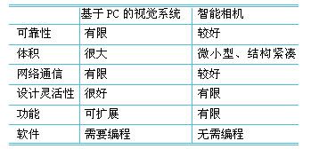 图 1 智能相机结构 3 智能相机的优势 智能相机具有易学、易用、易维护、安装方便等特点,可在短期内构建起可靠而有效的机器视觉系统。其技术优势主要表面在: (1) 智能相机结构紧凑,尺寸小,易于安装在生产线和各种设备上,且便于装卸和移动; (2) 智能相机实现了图像采集单元、图像处理单元、图像处理软件、网络通信装置的高度集成,通过可靠性设计,可以获得较高的效率及稳定性; (3) 由于智能相机已固化了成熟的机器视觉算法,使用户无需编程,就可实现有/无判断、表面/缺陷检查、尺寸测量、OCR/OCV、条码阅读等功能,从而极大的提高了应用系统的开发速度。 4 智能相机与基于PC的视觉系统的比较 智能相机与基于PC的视觉系统在功能和技术上差别主要表现在以下几个方面: (1) 体积比较 智能相机与普通相机的体积相当,易于安装在生产线和各种设备上,便于装卸和移动;而基于PC的视觉系统一般由由光源、CCD或CMOS相机、图像采集卡、图像处理软件以及PC机构成,其结构复杂、体积相对庞大。 (2) 硬件比较 从硬件角度比较,智能相机集成了图像采集单元、图像处理单元、图像处理软件、网络通信装置等,经过专业人员进行可靠性设计,其效率及稳定性都较高。同时,由于其硬件电路均已固定,缺少了设计的灵活性;基于PC的视觉系统主要由相机、采集/处理卡及PC机组成。由于用户可根据需要选择不同类型的产品,因此,其设计灵活性较大。同时,当产品来自于不同的生产厂家时,这种设计的灵活性可能会带来部件之间不兼容性或可靠性下降等问题。 (3) 软件比较 从某程度上来说,智能相机是一种比较通用的机器视觉产品,它主要解决的是工业领域的常规检测和识别应用,其软件功能具有一定的通用性。由于智能相机已固化了成熟的机器视觉算法,用户无需编程,就可实现有/无判断、表面/缺陷检查、尺寸测量、边缘提取、Blob、灰度直方图、OCR/OCV、条码阅读等功能。基于PC的视觉系统的软件一般完全或部分由用户直接开发,用户可针对特定应用开发适合自己的专用算法。另一方面,由于用户的软件研发水平及硬件支持的不同,导致由不同用户开发的同一种应用系统的差异较大。 智能相机的与基于PC的视觉系统的基本特性比较如附表所示: 此主题相关图片如下: 表 1 基本特性比较 5 智能相机的应用 智能相机不会有人眼的疲劳,有着比人眼更高的分辨精度和速度,借助红外线、紫外线、X 射线、超声波等高新探测技术,它在探测不可视物体和高危险场景时,更具有其突出优点。 智能相机技术现已得到广泛的应用。 (1) 在工业检测中的应用 目前,智能相机已成功地应用于工业检测领域,大幅度地提高了产品的质量和可靠性,保证了生产的速度。 例如产品包装、印刷质量的检测,饮料行业的容器质量检测,饮料填充检测,饮料瓶封口检测,木材厂木料检测,半导体集成块封装质量检测,卷钢质量检测,关键机械零件的工业CT等 。 在海关,应用X射线和机器视觉技术的不开箱货物通关检验,大大提高了通关速度,节约了大量的人力和物力。 在制药生产线上,智能相机可以对药品包装进行检测,以确定是否装入正确数量的药粒。 (2) 在农产品分选中的应用 我国是一个农业大国,农产品十分丰富,对农产品进行自动分级,实行优质优价,以产生更好的经济效益,其意义十分重大。 如水果,根据颜色、形状、大小等特征参数;禽蛋,根据色泽、重量、形状、大小等外部特征;烟叶,根据其颜色、形状、纹理、面积等进行综合分级。 此外,为了提高加工后农产品的品质,对水果的坏损部分、粮食中混杂的杂质、烟叶茶叶中存在的异物等都可以机器视觉系统进行检测并准确去除。 随着工厂化农业的快速发展,利用智能相机对作物生长状况进行监测,实现科学浇灌和施肥,也是一种重要应用。 (3) 在机器人导航和视觉伺服系统中的应用 赋予机器人视觉是机器人研究的重要课题之一,其目的是要通过图像定位、图像理解,向机器人运动控制系统反馈目标或自身的状态与位置信息,使其具有在复杂、变化的环境中自适应的能力。 例如机械手在一定范围内抓取和移动工件,摄像机利用动态图像识别与跟踪算法,跟踪被移动工件,始终保持其处于视野的正中位置。 (4) 在医学中的应用 在医学领域,智能相机用于辅助医生进行医学影像的分析,主要利用数字图像处理技术、信息融合技术对X 射线透视图、核磁共振图像、CT 图像进行适当叠加,然后进行综合分析;还有对其它医学影像数据进行统计和分析,如利用数字图像的边缘提取与图像分割技术,自动完成细胞个数的计数或统计,这样不仅节省了人力,而且大大提高准确率和效率。 (5) 其它方面 在闭路电视监控系统中,智能相机被用于增强图像质量,捕捉突发事件,监控复杂场景,鉴别身份,跟踪可疑目标等,它能大幅度地提高监控效率,减少危险事件发生的概率。 在交通管理系统中,智能相机被用于车辆识别、调度,向交通管理与指挥系统提供相关信息。 在卫星遥感系统中,机器视觉技术被用于分析各种遥感图像,进行环境监测、地理测量,根据地形、地貌的图像和图形特征,对地面目标进行自动识别、理解和分类等。 6 智能相机的发展趋势 由于智能相机具有体积小、多功能、方便易用等特点,在多种领域具有广阔的应用前景,这也正是越来越多的相机和板卡制造商